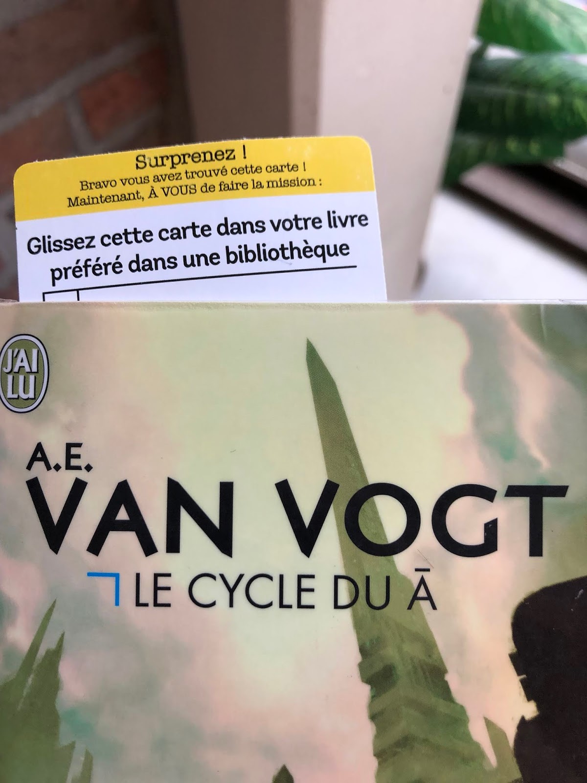Cartes vertes – Pensez aux autres : pour ces défis, il vous faudra agir avec bienveillance, ni plus ni moins. Cela peut se faire par un acte original : je ne tiens pas tous les jours la porte à 10 personnes d’affilé (« Coucou Amaya ») ou par un acte de la vie de tous les jours comme rendre un service. J’ai profité de ramener un fameux « L’île au trésor » de France, difficilement trouvable en Belgique à mon voisin pour lui filer la carte de ce défi (et la note, « Coucou Fabrice »)