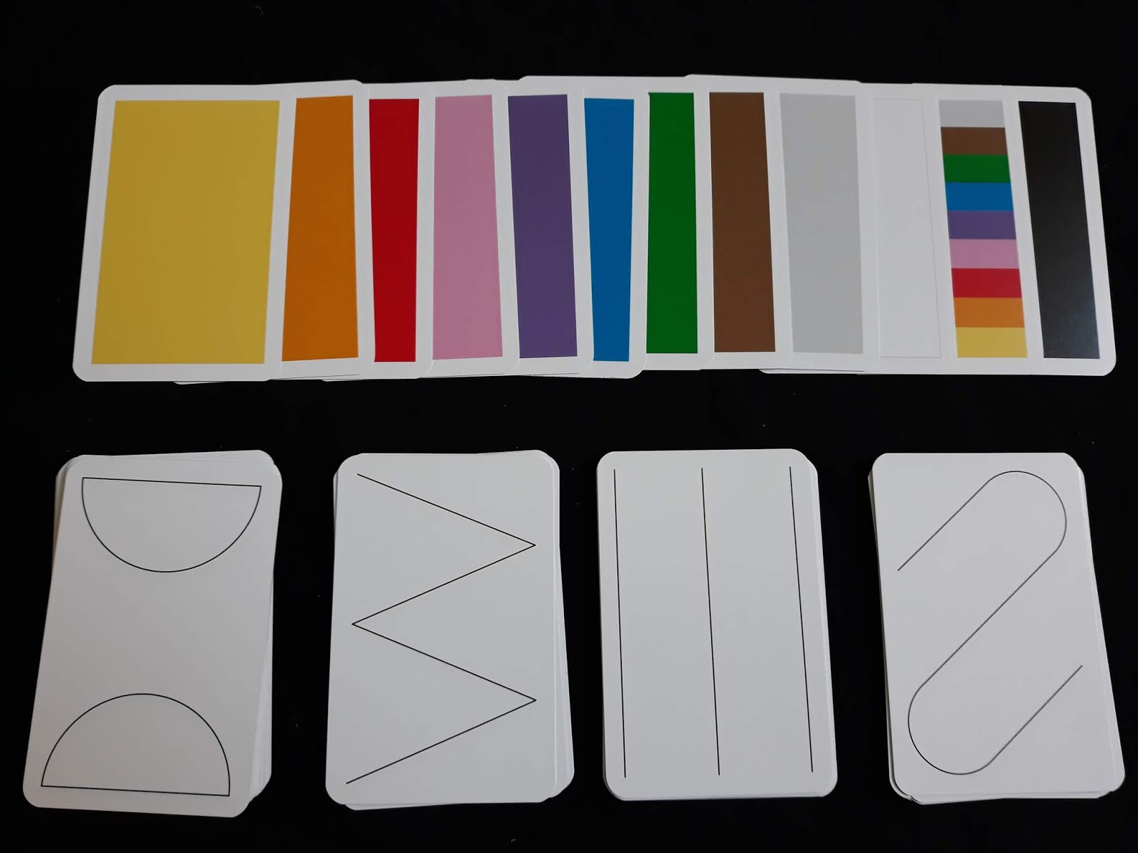 Quand on ouvre la petite boîte de Farben, on se retrouve face à de nombreuses cartes. Chaque joueur va recevoir un ensemble de 12 cartes de couleurs différentes. Le verso est propre à chacun afin de pouvoir les différencier facilement.