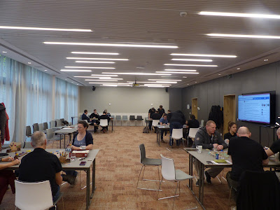 On s’est donc retrouvé au Martin’s Hotel de Louvain-La-Neuve dans une grande salle, très bien éclairée, avec des chaises confortables (ouf, pour enchaîner les jeux longs, c’est mieux).