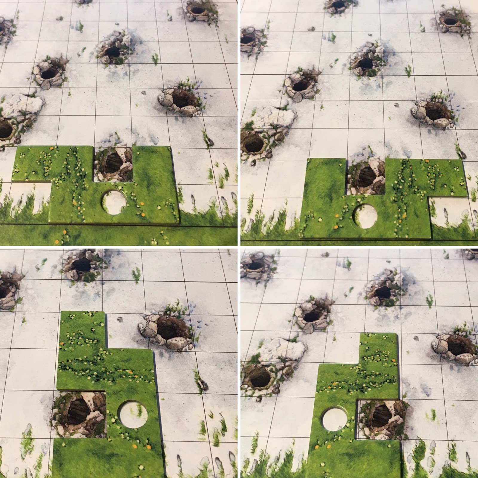 – -> ne peuvent être déplacées, recouvrir un autre tuile, dépasser du plateau, recouvrir un terrier (sauf si vous avez un terrier déneigé disponible).