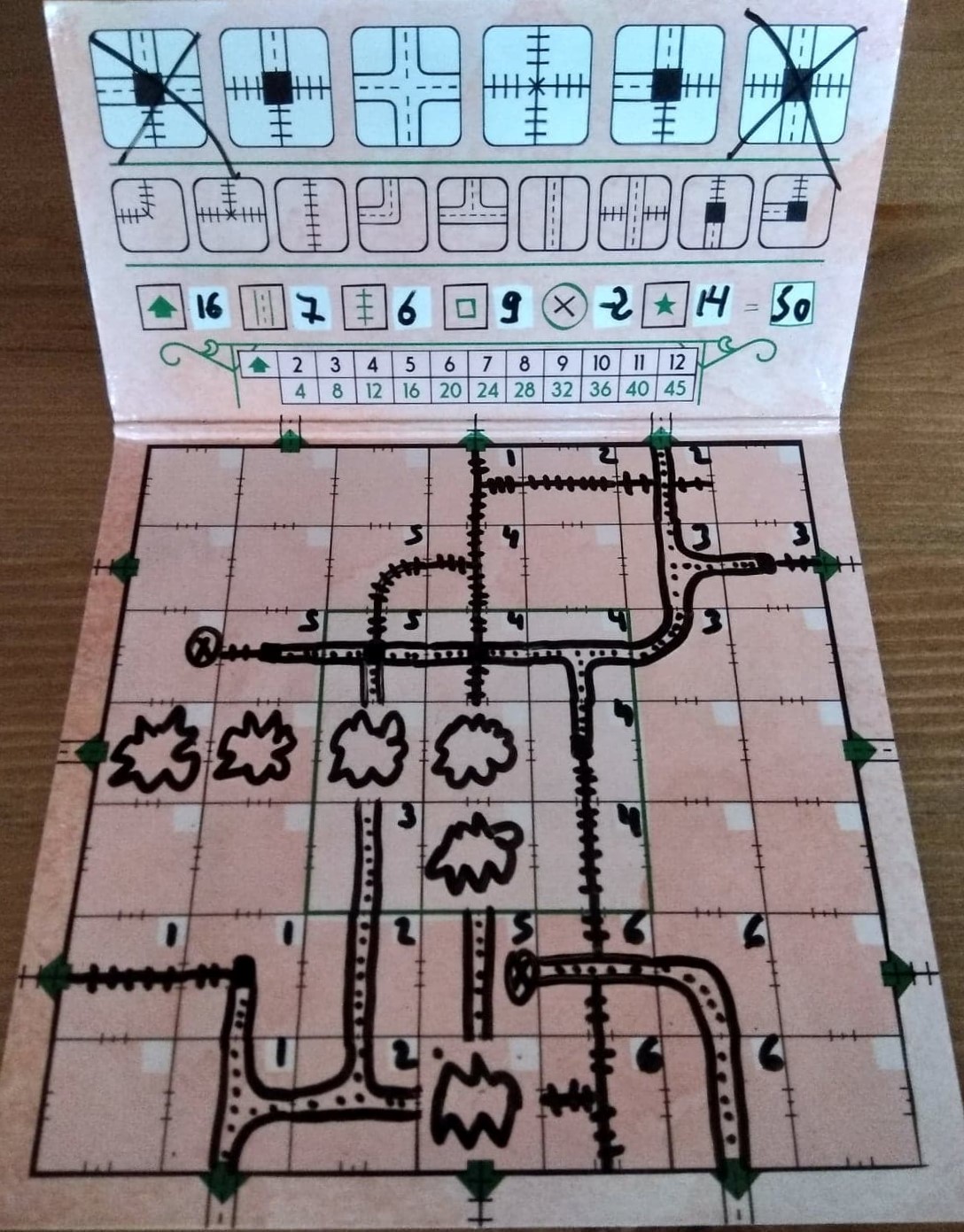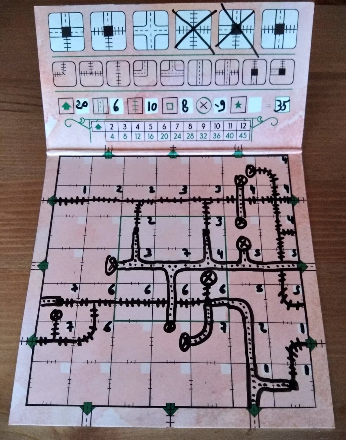 – leurs voies sans issue : chaque voie qui n’est pas reliée à une autre voie ou au bord du plateau fait perdre 1 point.