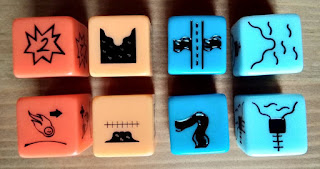 Les extensions de l’édition Grand Bleu sont Rivière et Lac. Il n’est jamais obligatoire d’utiliser les résultats des dés de ces extensions.