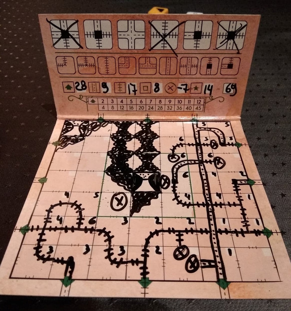 Une fois que tous les joueurs ont terminé de dessiner les voies, ils marquent le numéro du tour en cours dans le carré en haut à droite de chaque case dessinée ce tour.
