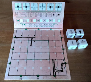 Dans Railroad Ink, vous allez essayer de connecter le plus de sorties de voies (les grosses flèches vertes) en créant vos réseaux. Au plus vous connecterez de sorties dans un même réseau, au plus vous aurez de points. Vous aurez aussi des points supplémentaires pour votre plus longue voie ferrée et pour votre plus longue autoroute. De plus, vous aurez un bonus si vous avez dessiné des voies sur les 9 cases du centre de votre plateau.