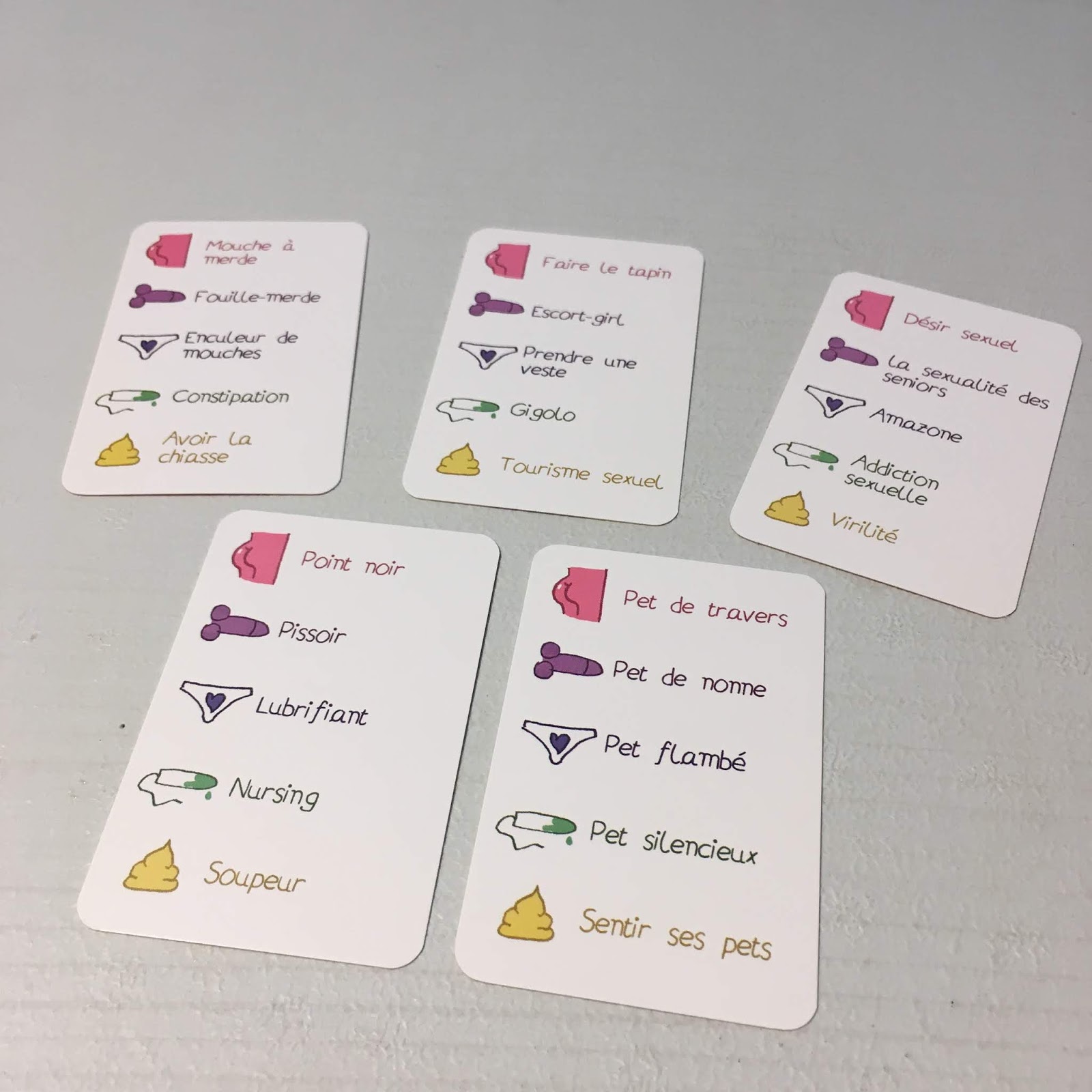 Après l’avoir testé avec des amis obsédés, fétichistes… nous l’avons testé avec des amis « normaux » et en famille et il s’est avéré que systématiquement, après quelques minutes de réserve, tout le monde s’est prêté au jeu. Ils ont pris énormément de plaisir à faire deviner et hurler des mots qu’on aurait peut-être préféré qu’ils ignorent.
