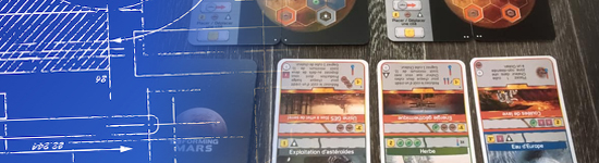Quand j’ai vu ce PNP en version mini, je me suis bien évidement jeté dessus comme un zombie en manque de cervelle. Même si le jeu est toujours en cours de finalisation, j’ai réalisé la version du jeu afin de le tester. Eh bien, il est pas mal, on ressent bien cet esprit que les frères Fryxelius ont mis dans leur jeu, Terraforming Mars. Cette version se compose de 9 cartes recto/verso, de quelques cubes. Et de 4 disques représentant certains badges du jeu de base. Ici on draftera à 2 joueurs 3 cartes sur un tour et chacun des joueurs aura sont projets à tenter de réaliser.