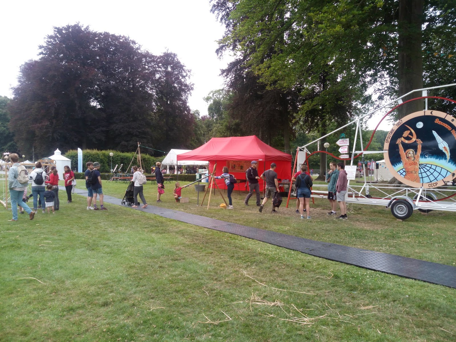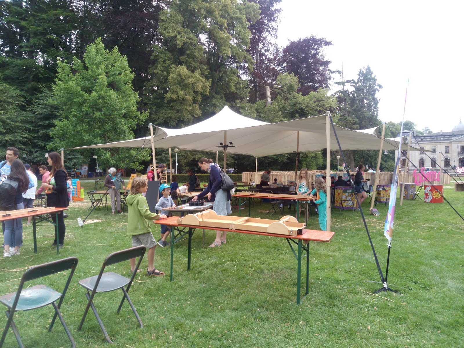Le festival existe depuis 2008. Au départ, il avait lieu dans les Ardennes, à Hotton. J’y suis déjà allée en 2011 et je peux vous dire que c’était déjà un festival familial… mais on n’y trouvait pas encore de jeux. Puis, en 2013, le festival change d’organisateurs et déménage à Enghien. Et lors de cette année de renouveau, le jeu débarque dans le festival !
