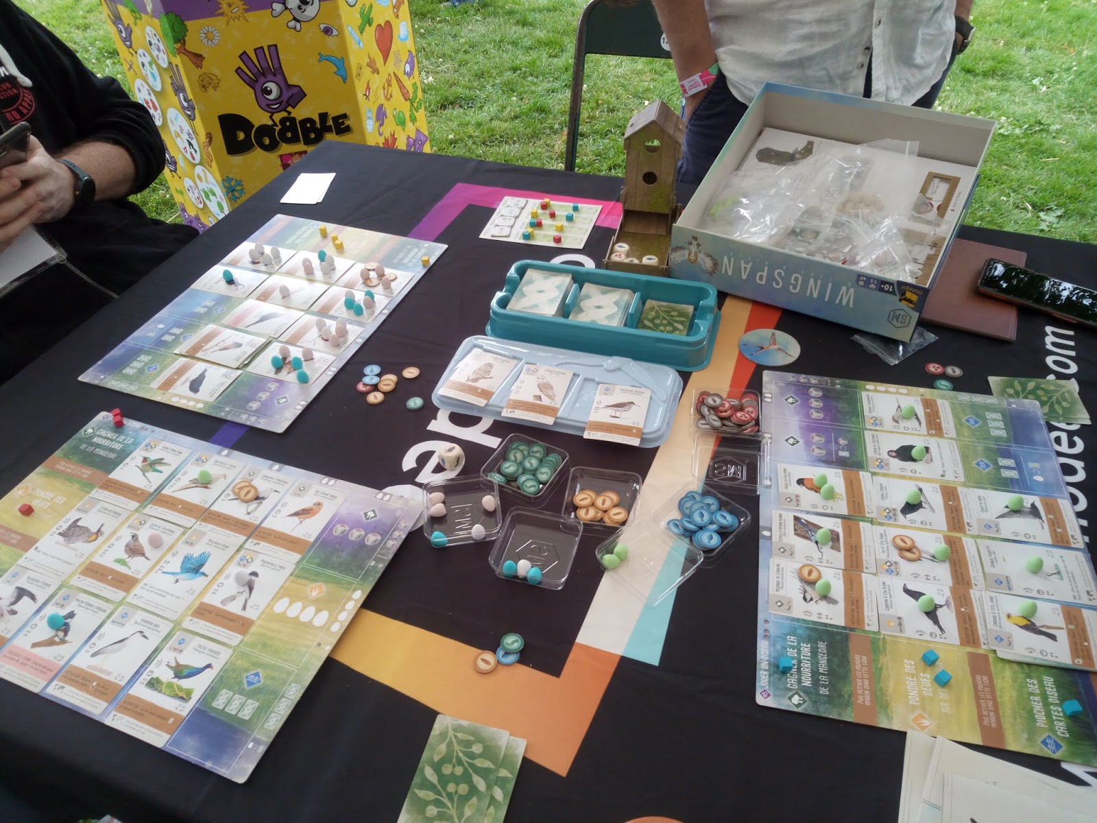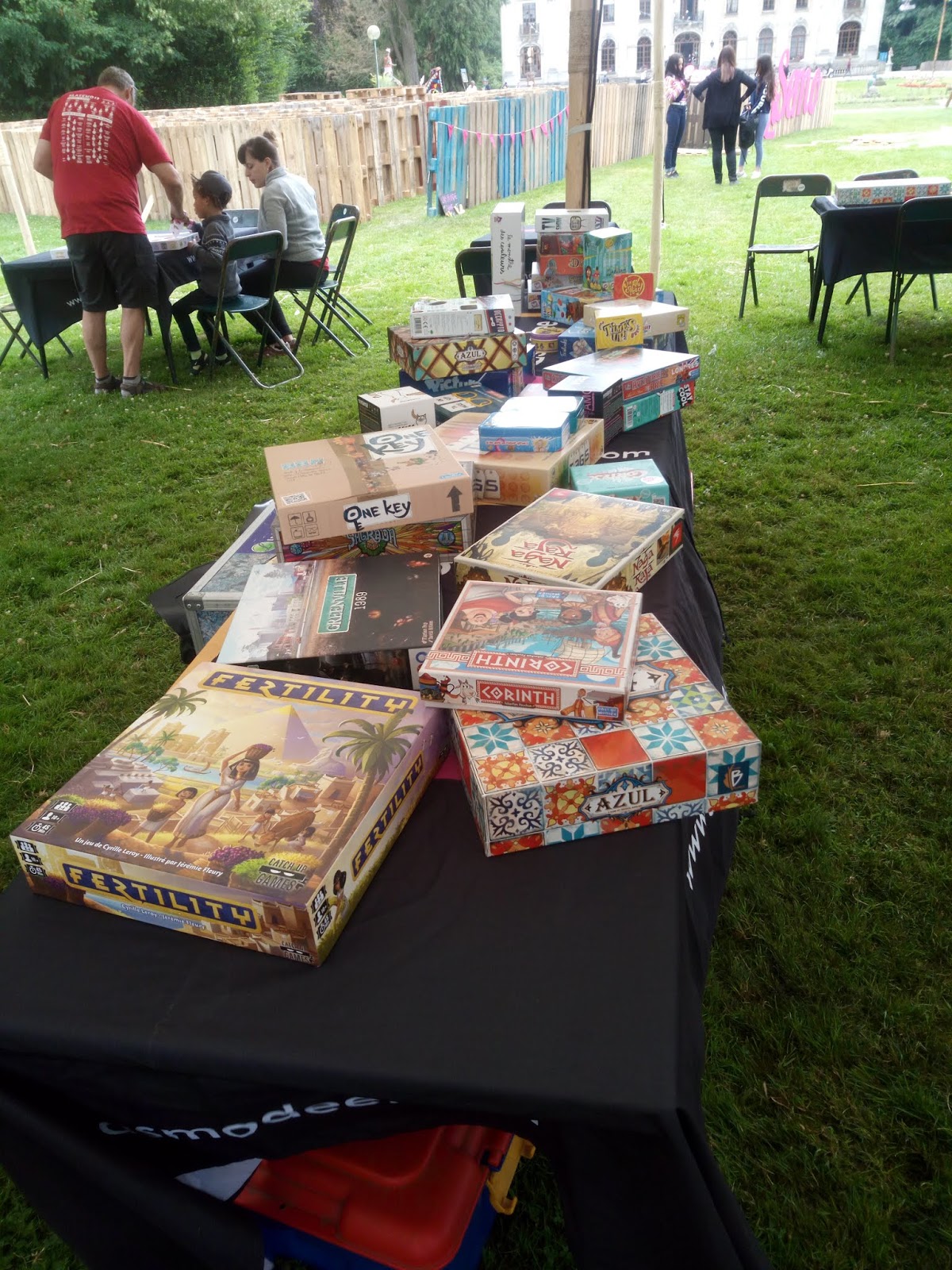Et puis, entre les miroirs déformant et les jeux d’adresse, on trouve les jeux de société. Une grande tente regroupe les magnifiques jeux en bois de la ludothèque d’Enghien et la sélection estivale d’Asmodée.