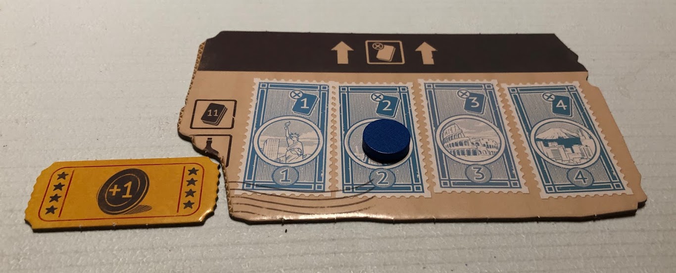 Une fois par partie, les voyageurs peuvent utiliser le jeton Bonus ; celui permet de dévoiler la couleur Indice d’une seconde carte sur le paravent du meneur, au lieu d’une.