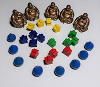 Il faudra également tenter de préserver la construction de ses temples contre les tremblements de terre à l’aide de bouddhas. Ceux-ci pourront également vous aider à finir la construction de temples, s’ils sont savamment utilisés. Une fois un temple fini, sa structure sera assez solide pour être protégé des séismes et donc vous pourrez vous concentrer sur les autres projets en cours. Malgré une partie de hasard due aux dés, vous pourrez toujours vous en sortir via des actions spécifiques.