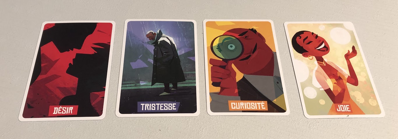 Voilà la phase où sera révélée, chacun à son tour, l’émotion qu’il a choisie, il peut alors expliquer le pourquoi s’il le souhaite et poser sa carte sur l’émotion sur le plateau central. Attention, si le joueur qui va révéler son émotion a un jeton Joker posé sur celle-ci, il faut d’abord que la personne ayant posé le jeton devine quelle émotion il va révéler (bah oui, logique me direz-vous). Si il devine correctement, on avance la marqueur de points de 2, voilà pourquoi je vous disais qu’il faut bien les utiliser, ces j’tons ! Il est ensuite défaussé.