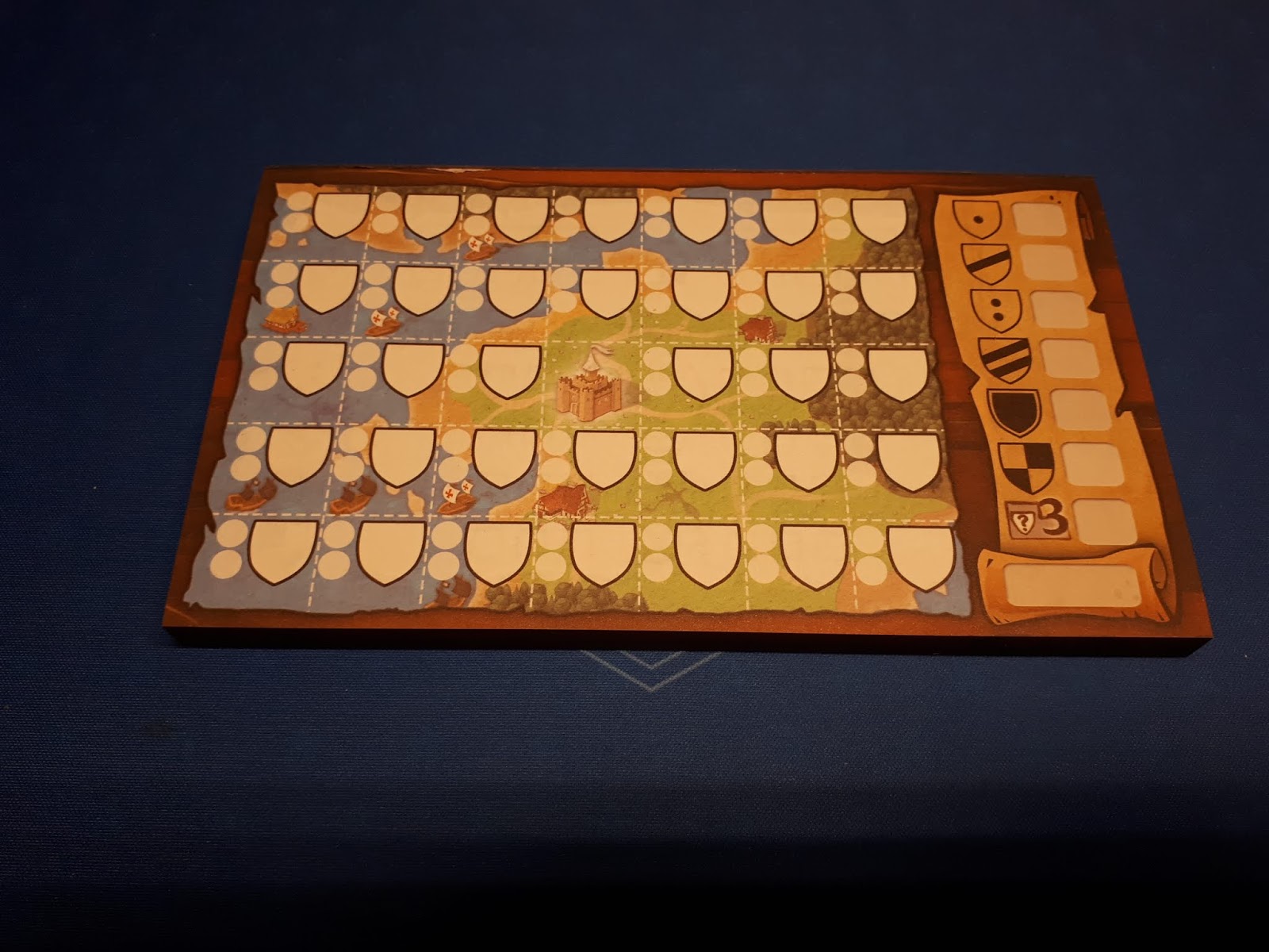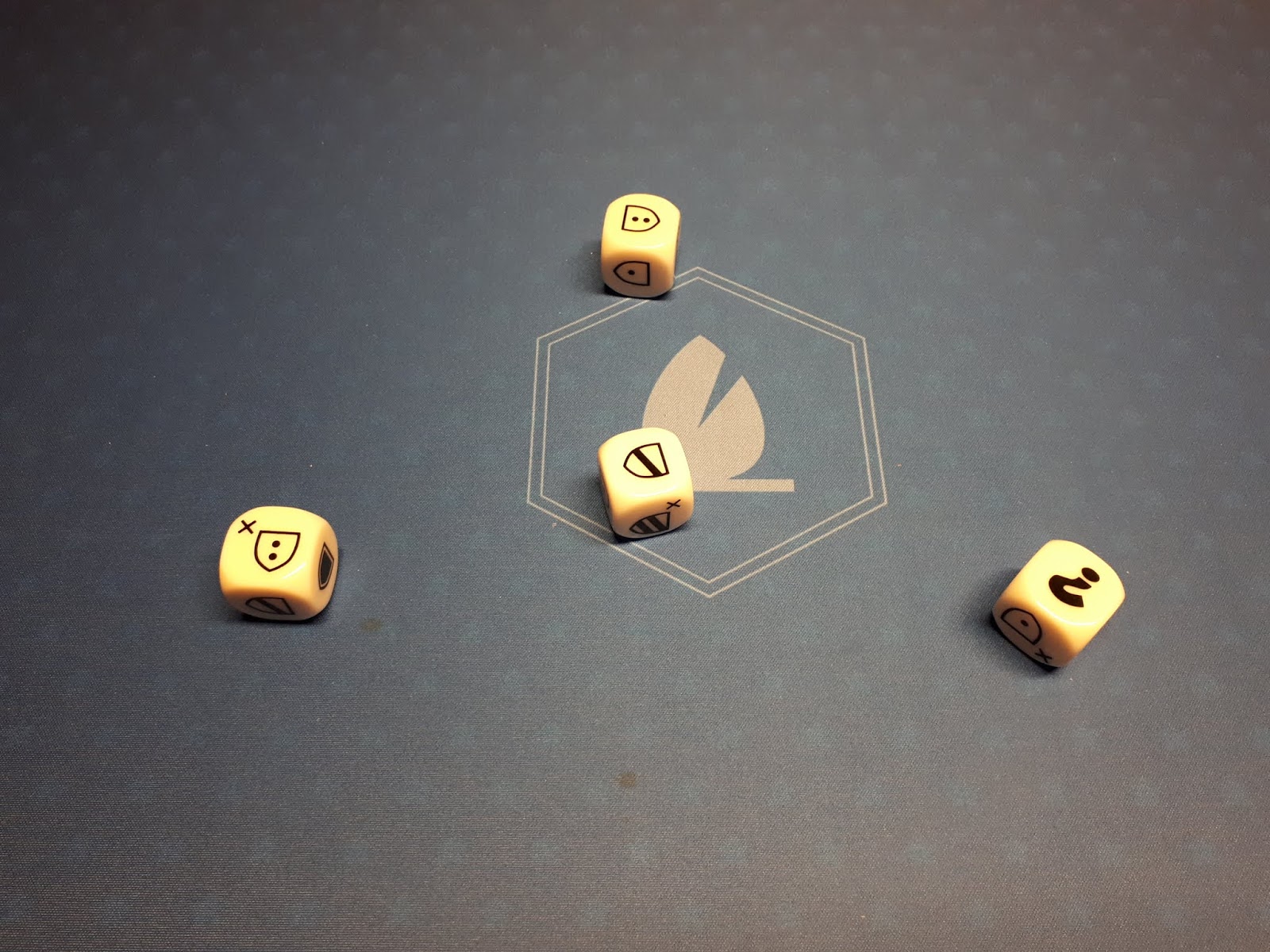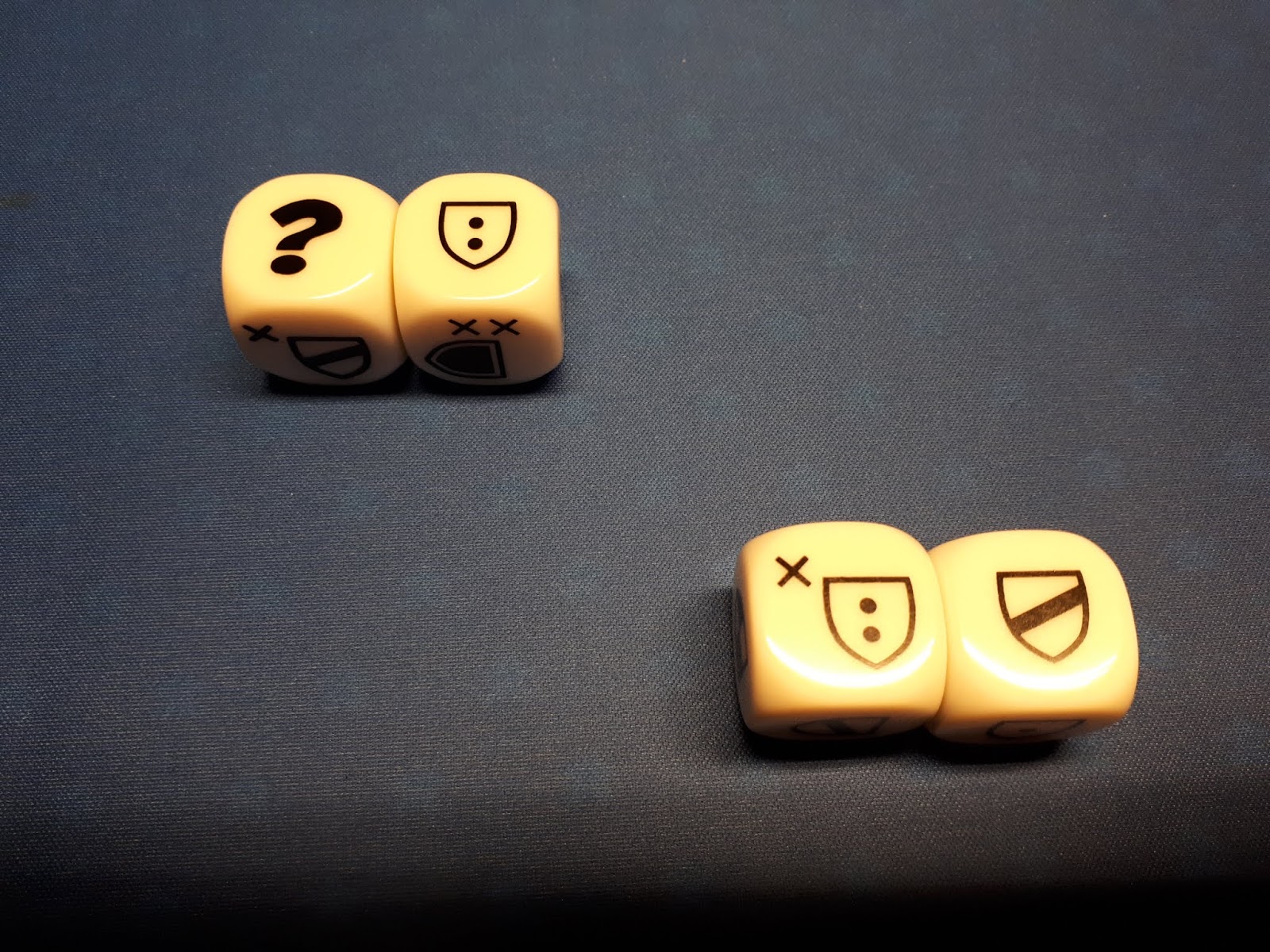 Pour info, il existe 7 symboles différents sur les faces de dés (6 blasons + un joker), présents en nombres différents, ce qui signifie que certains symboles sont plus rares que d’autres.