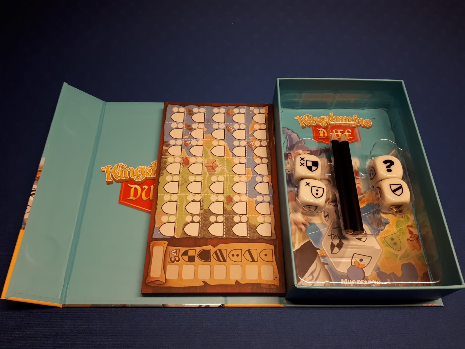 Alors que Queendomino peut être mélangé avec Kingdomino et que l’Age des Géants est une extension, Kingdomino Duel est clairement un standalone.