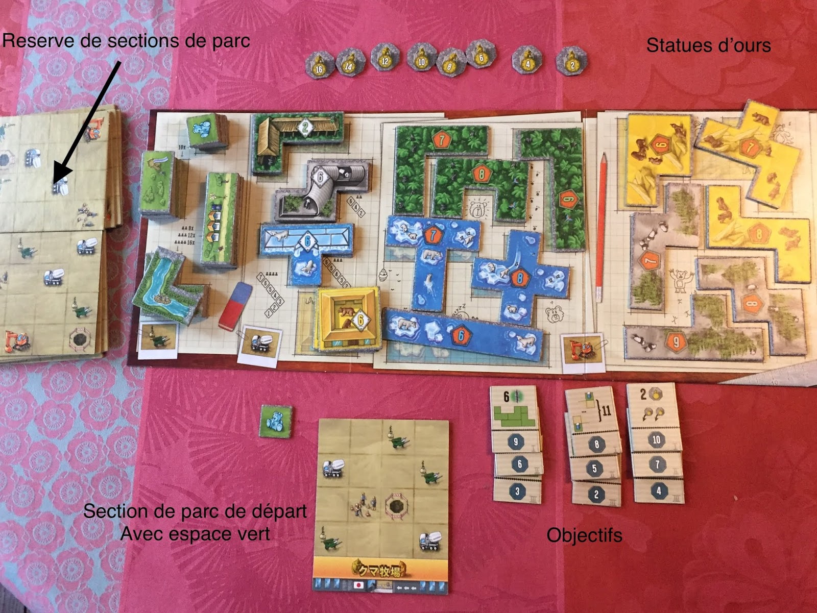 - Petit à petit l’ourson fait son nid : Etant donné que l’icône enclos n’est pas présente dans la section de parc de départ et qu’elle est présente qu’une fois par nouvelle section de parc, on fait souvent l’erreur de placer rapidement les nouvelles sections de parc pour pouvoir piocher rapidement les enclos. Malheureusement, cette stratégie ne paie pas car on est en retard pour achever les sections (obtenir donc les statues d’ours les plus élevées) et les objectifs (certains requièrent qu’on construise minutieusement notre parc).