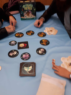 – Farben: Ce jeu n’est pas tout récent (il est sorti en 2018) et ne m’avait jamais attirée. On avait déjà plusieurs fois tenté de m’y faire jouer, sans succès… N’étant pas une bonne conteuse d’histoires, je m’étais toujours débinée… jusqu’à ce dimanche ! Et bien, ce fut une belle découverte, j’ai vraiment pris énormément de plaisir à y jouer ! Et j’avoue être impatiente à l’idée d’y rejouer avec mes amis.