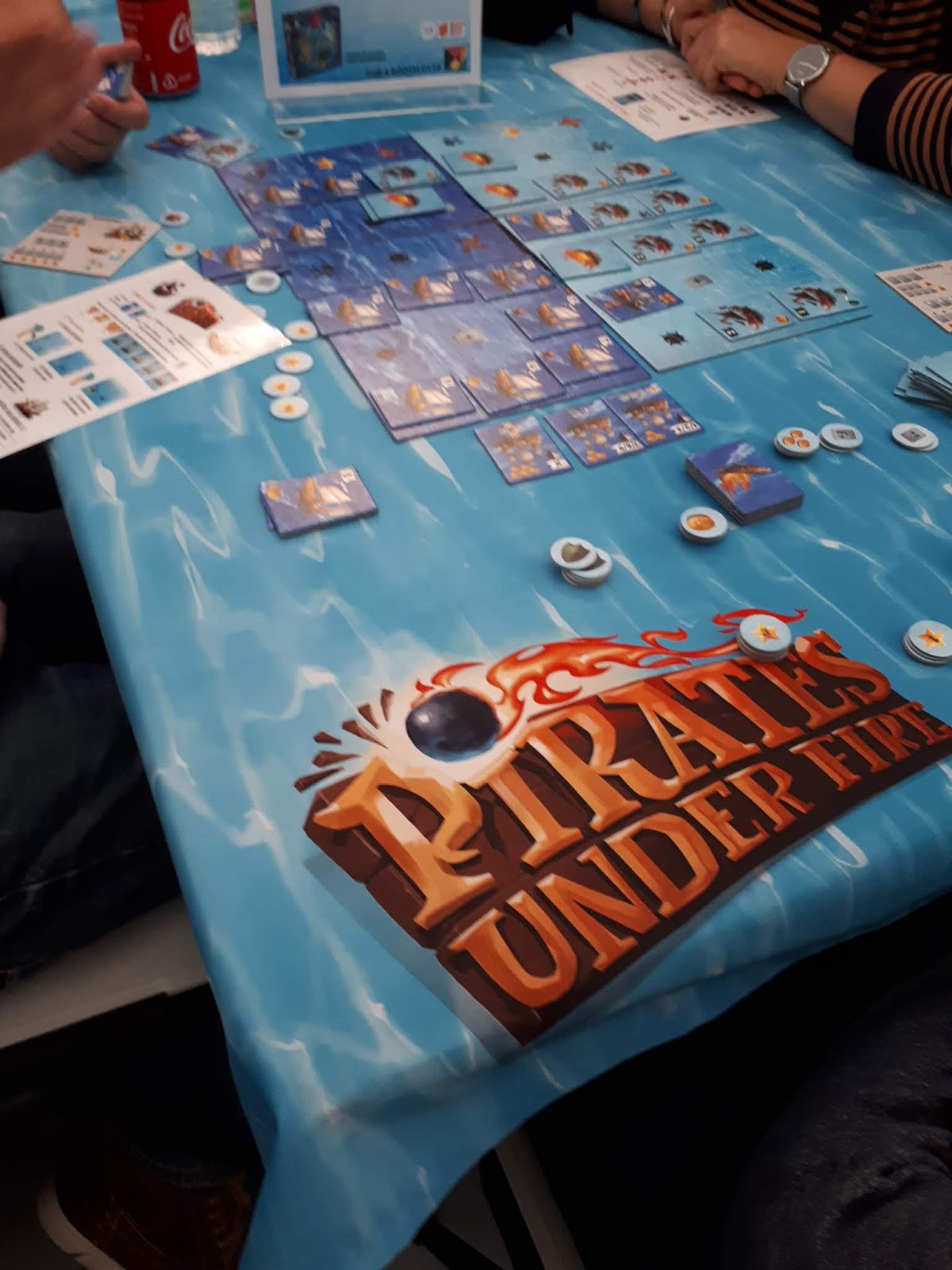 – Pirates under Fire: édité par Explor8 (Dimitri et Anne-Cat Perrier) qui n’est autre que la boîte d’édition du jeu à succès Big Monster. Dans ce jeu, chaque joueur incarne un pirate à la tête d’une flotte de bateaux. Le but du jeu est de déployer ses bateaux de façon à former des combinaisons tout en réalisant des effets qui permettent de ralentir le déploiement de son adversaire ou d’accélérer le vôtre.