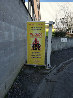 Pour les non-habituĂ©s, je vous prĂ©viens dĂ©jĂ que lâentrĂ©e nâest pas toujours facile Ă trouver. ArrivĂ© Ă lâIATA (rue de la Montagne, une rue qui monte assez fort pour mĂ©riter son nom), il faut entrer, aller droit devant, puis face au bĂątiment s’engouffrer sur un petit chemin Ă gauche, puis Ă droite et on tombe enfin sur la porte dâentrĂ©e. Je pense que trouver lâentrĂ©e est le premier jeu que vous devez jouer. Une sorte dâescape game Ă lâenvers oĂč il faut sâinfiltrer et pas sâĂ©chapper.