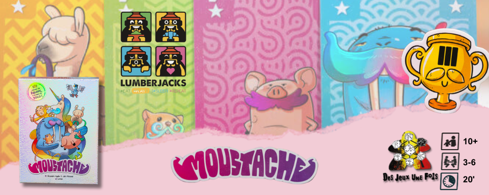 Aujourd’hui je vais vous parler de Moustache. C’est un jeu de plis par équipe (mais pas tout à fait) où les règles changent au fil des manches et les équipes aussi ! Moustache est un jeu qui se veut accessible, même pour ceux qui ne sont pas habitués à la belote. Prêt.e pour une petite coupe ?