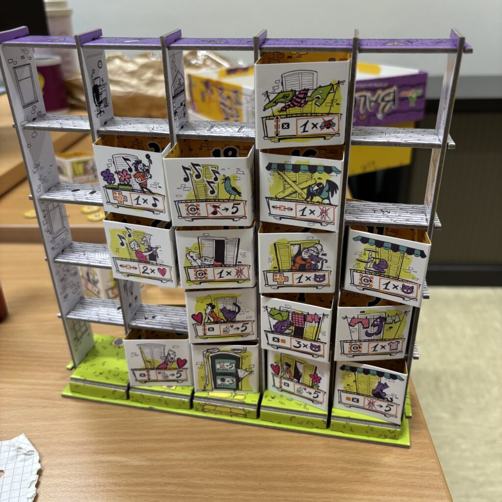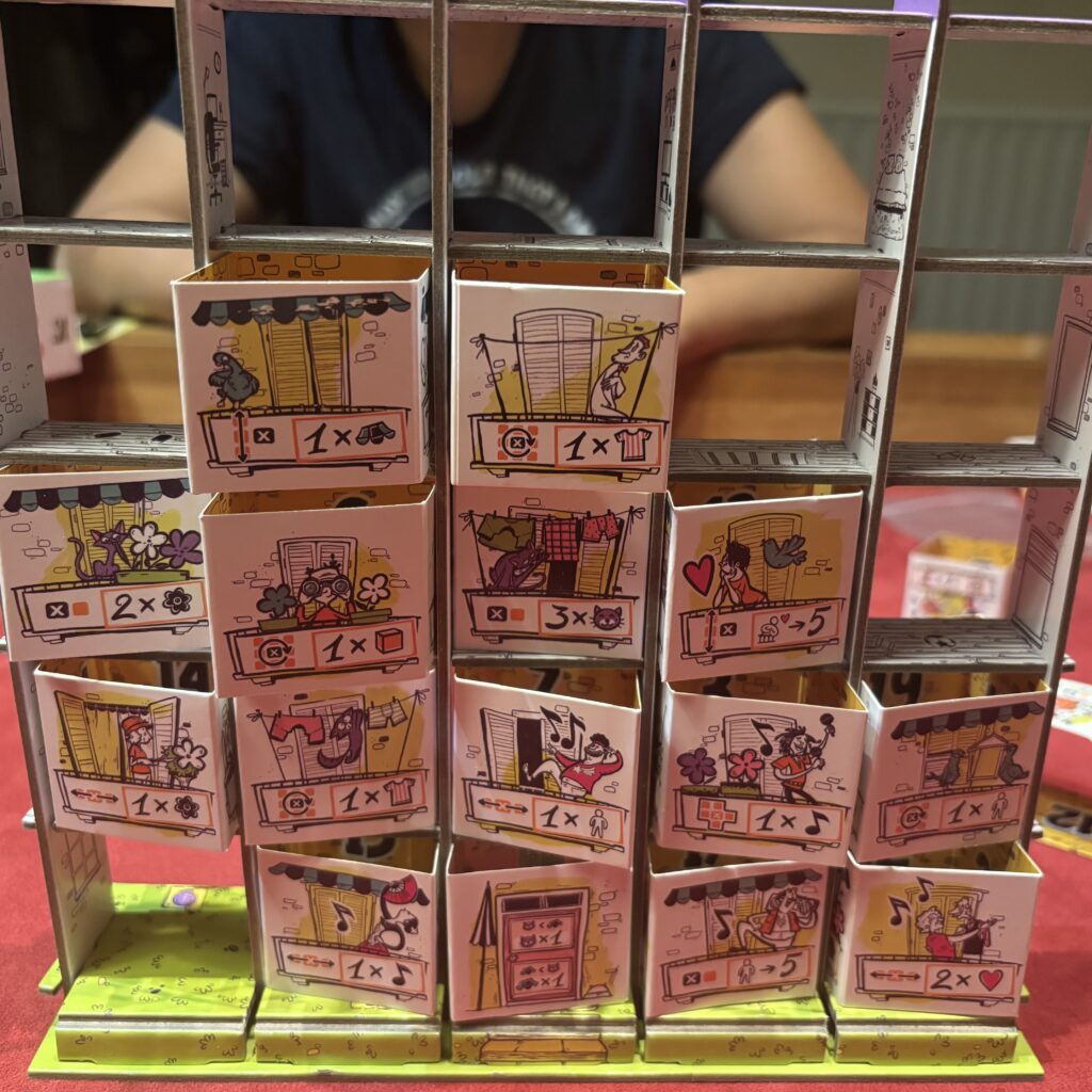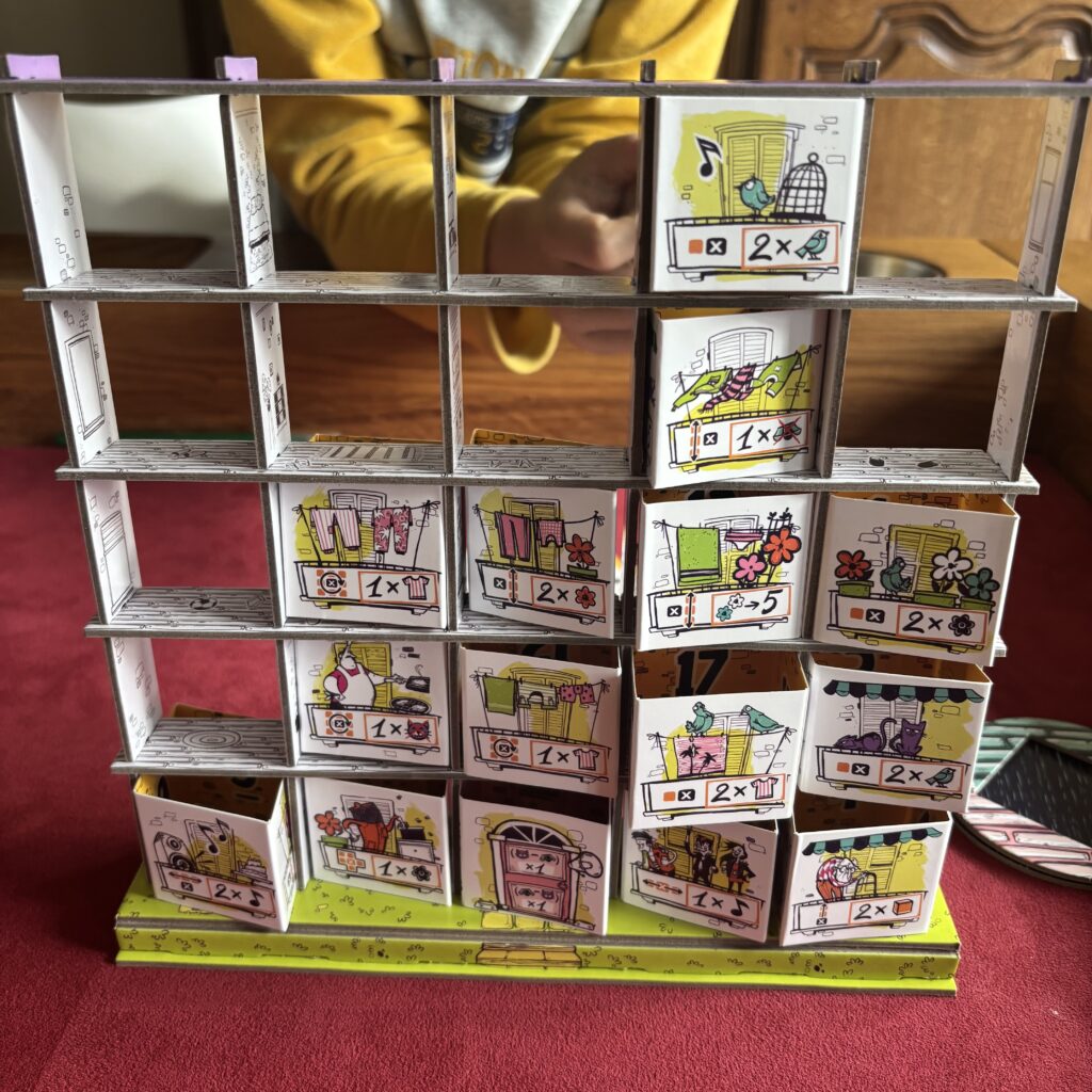Je le recommande donc Balconia pour un public familial pour des parties rapides où caser tout ce petit monde devient un défi ! Par ailleurs, le jeu ne prend pas trop de place !