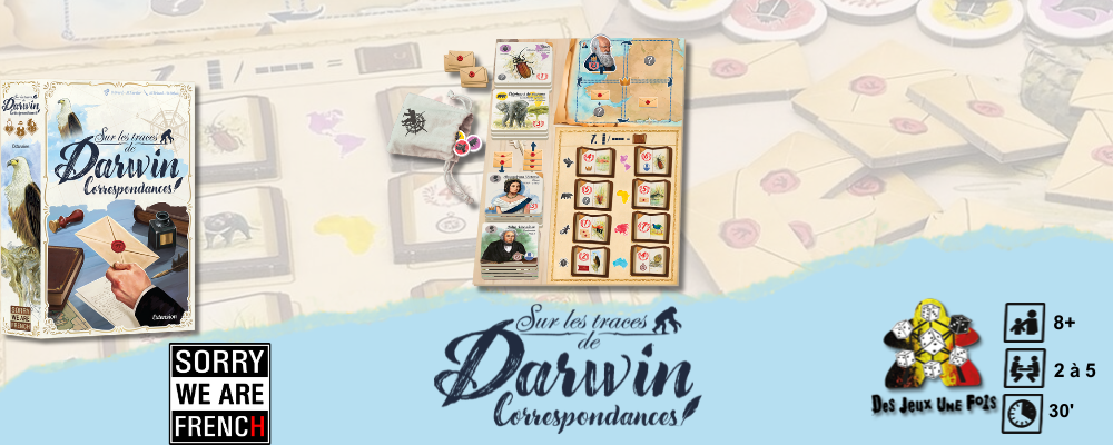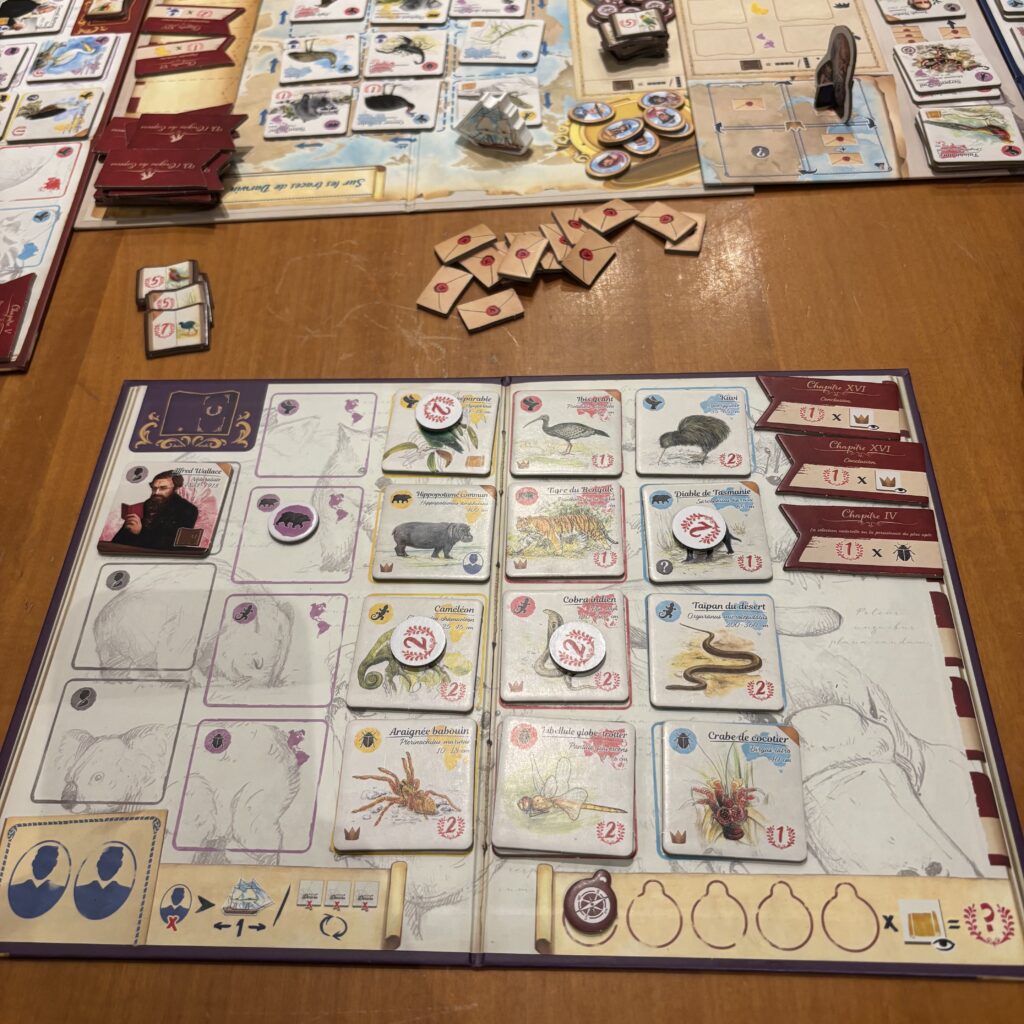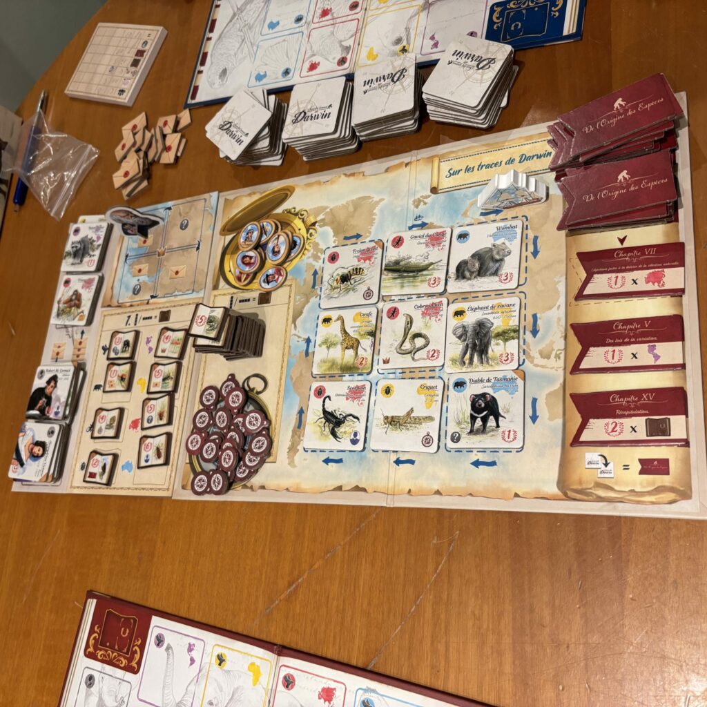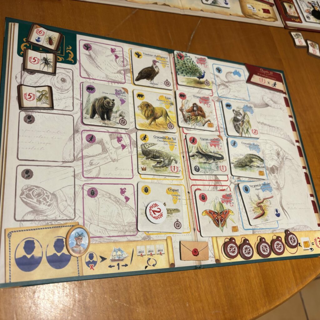 Sur les traces de Darwin est un jeu que j’ai aimé avec le temps. En effet, cela n’a pas été tout de suite un coup de coeur quand on l’a testé en 2023. Néanmoins, c’est un jeu qui plaît par son côté très fluide et le côté culturel qu’il offre. Je suis plutôt de la team extensions et donc je n’ai pas hésité à acquérir Sur Les Traces de Darwin – Correspondances. Grâce à cette extension la course vers la collection espèce/continent est encore plus tendue et le symbole Darwin trouve tout son sens avec un nouveau plateau. C’est vachement mieux que ce misérable gain de points et qu’on s’embête à prendre le standee chez l’autre… C’est l’extension qui fait que le jeu est encore mieux ! Ca a titillé ta curiosité ? Alors c’est parti