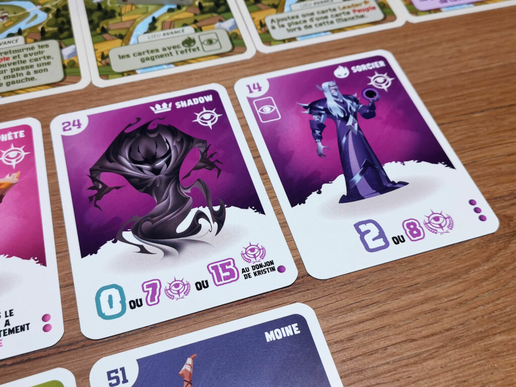 Cette pression permanente sur le seuil de Corruption structure l’ensemble des décisions. Certaines cartes rapportent davantage de points si le Mal gagne, d’autres si le Bien triomphe. Les joueurs doivent donc constamment arbitrer entre ralentir la partie pour optimiser leur score, ou au contraire précipiter la fin afin de profiter d’un état du jeu favorable.