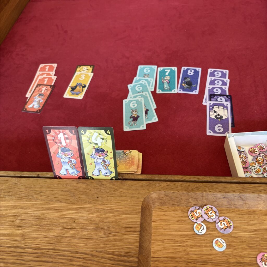 Quant au décompte, il faut voir le nombre de puces qu’il vous reste et ajouté les points des cartes collectées. Ce n’est pas forcément celui ou celle ayant le moins de puces qui remporte la partie.