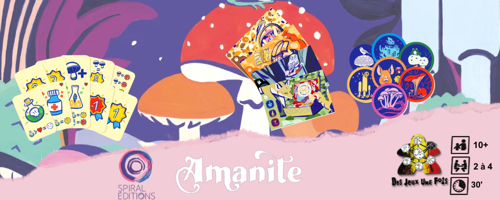 Amanite est un jeu de rĂ©flexions et de prises de risque oĂč vous ne saurez jamais exactement tous les effets des champignons avant la fin de la partie. Un jeu de rĂŽles cachĂ©s oĂč les rĂŽles sont dĂ©tenus par les ressources et non par les joueurs.