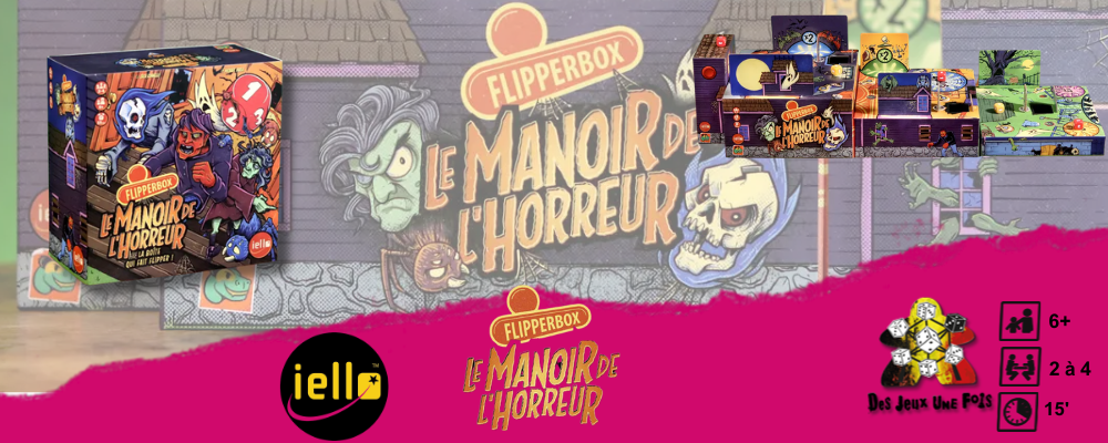 Envie d’un jeu qui combine tactique et dextérité avec une bonne touche de chance mais pas trop non plus ? Alors je te présente Flipperbox : Le Manoir de l’Horreur. Ca sonne lugubre mais ne t’inquiète pas, c’est un jeu que mes deux garçons de 6 et 9 ans ont