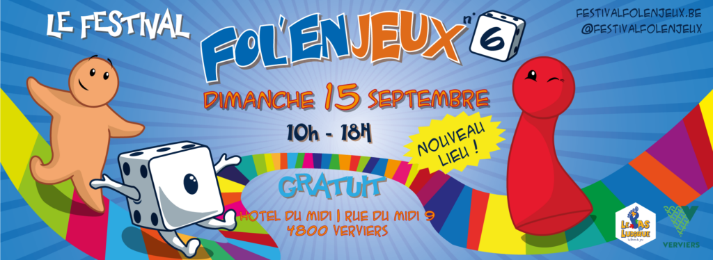 Verviers vous accueille chaque année avec le Festival Folenjeux qui est un festival pour tous. Editeurs, clubs de jeux et prototypes vous attendent ! C’est le deuxième ou troisième dimanche de septembre de 10 à 18h.