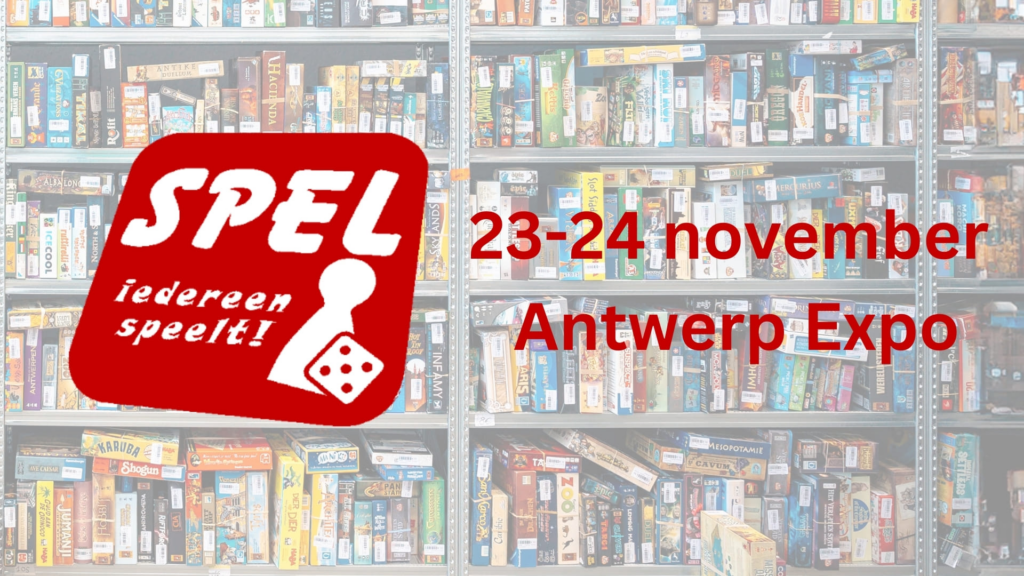 Het SPEL jaarlijks plaatsvindt te Antwerpen ongeveer het derde weekend van november. pellenbeurs voor jong en oud! Even in de tweedehands snuisteren, koopjes scoren in de winkel, de nieuwste spellen ontdekken, een prototype testen of die oude klassieker terug opnieuw spelen? Het kan allemaal op Spel!